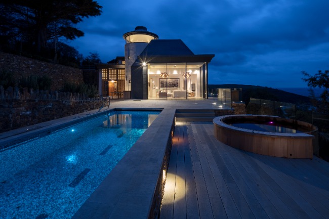 Some of the other more interesting elements of design included seaward facing cantilever balcony structures; circular steel-framed glazed lantern with cantilever helical staircase; a 25m long reinforced concrete lap swimming pool; subterranean surface water attenuation tanks; multi-storey garage and guest accommodation, right through to vehicle turntable substructures and bespoke outdoor leisure facilities.